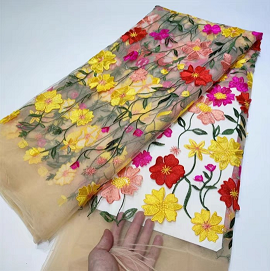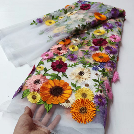 ผ้าลูกไม้ลายดอกไม้สามมิติ