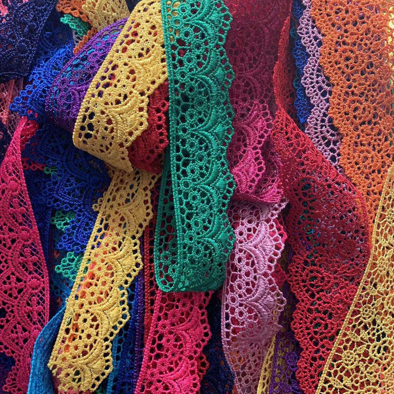 ลูกไม้โพลีเอสเตอร์แบบกำหนดเองที่กำหนดเองการเย็บปักถักร้อยแคบตัดแต่งสีหลายสีที่ทำจากวัสดุโพลีเอสเตอร์คุณภาพสูงพร้อมงานฝีมือปักที่ดีมันมีสีสันที่หลากหลายและความกว้างที่ปรับได้ เหมาะสำหรับการตกแต่งเสื้อผ้าของผู้หญิงเสื้อผ้าเด็กและของใช้ในครัวเรือน
