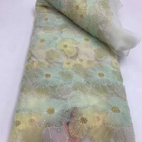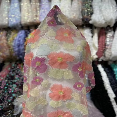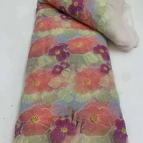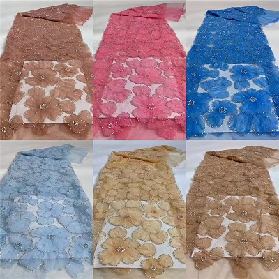 ทำด้วยมือเย็บปักถักร้อยตาข่ายผ้าลูกไม้t ulle 3Dดอกไม้ลูกไม้ชุดแต่งงานลูกปัดผ้าลูกไม้