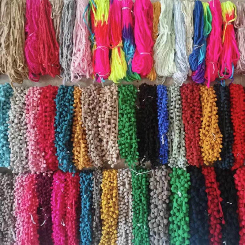 Multi Colors Ball Lace Decorative Tassel Design Pom Pom Trim ทำจากวัสดุด้าย/โพลีเอสเตอร์ฝ้ายคุณภาพสูงพร้อมการออกแบบ Pom และ Tassel มันมีสีที่หลากหลายและมีชีวิตชีวา เหมาะสำหรับเสื้อผ้าเด็กของใช้ในครัวเรือนงานฝีมือและของตกแต่งงานเทศกาล มันมีสัมผัสที่นุ่มนวลทนต่อการสึกหรอและไม่ปล่อยลูกบอล