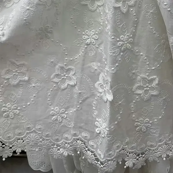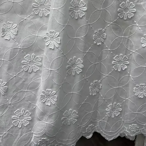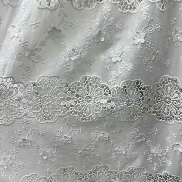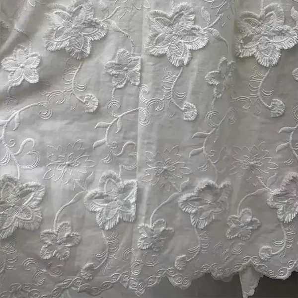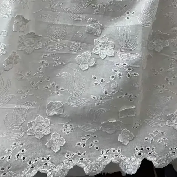 ดอกไม้ 3 มิติตกแต่งผ้าลูกไม้ปักฝ้าย 100% พร้อมรูตาไก่ที่มีการปักลายดอกไม้ 3 มิติและการตัดตาไก่ที่ละเอียดอ่อนลูกไม้ผ้าฝ้าย 100% นี้มีความสง่างามที่ระบายอากาศได้สำหรับการสวมใส่เจ้าสาวชุดและเสื้อ การออกแบบมิติสร้างพื้นผิวที่หรูหราในขณะที่ยังคงความนุ่มและผ้าม่าน เหมาะสำหรับแฟชั่นโรแมนติกที่ได้รับแรงบันดาลใจจากวินเทจ